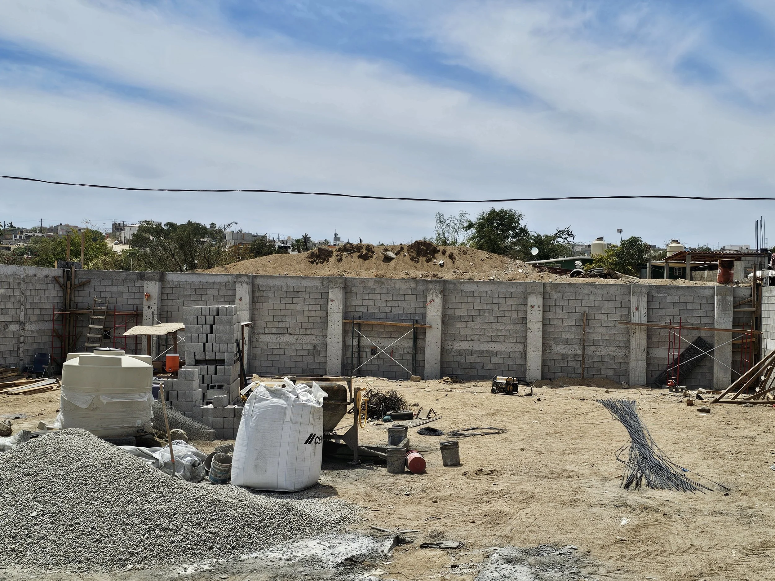 Security and sustainability. For over a year, our team and dedicated volunteers worked tirelessly under the sun to build the security walls that now enclose our property, creating a safe and welcoming haven. We then built a massive cistern, a foundational piece that ensures we have the water needed to serve the hundreds who come to our doors.